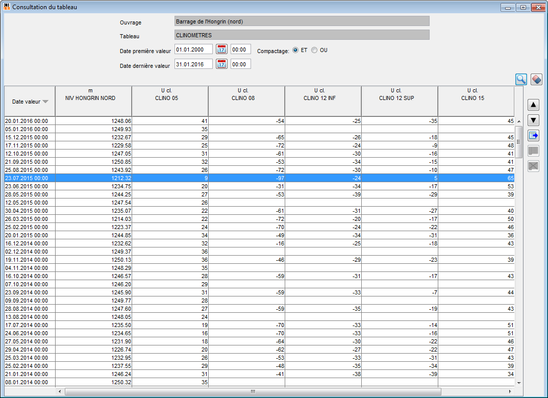 Des tableaux regroupant les données sélectionnées peuvent être créés et affichés sur des périodes définies par l’utilisateur.